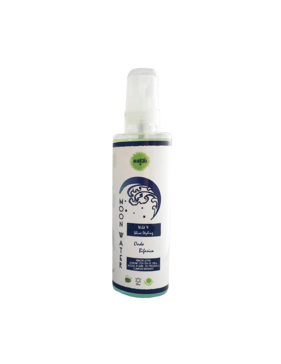 Moon Water – Onda Bifasica di Anarkhìa Bio è una lozione marina bifasica, formulata con il 72% di vera acqua di mare pugliese, sottoposta a un'azione di filtraggio e sterilizzazione, per ottenere un'acqua pura.