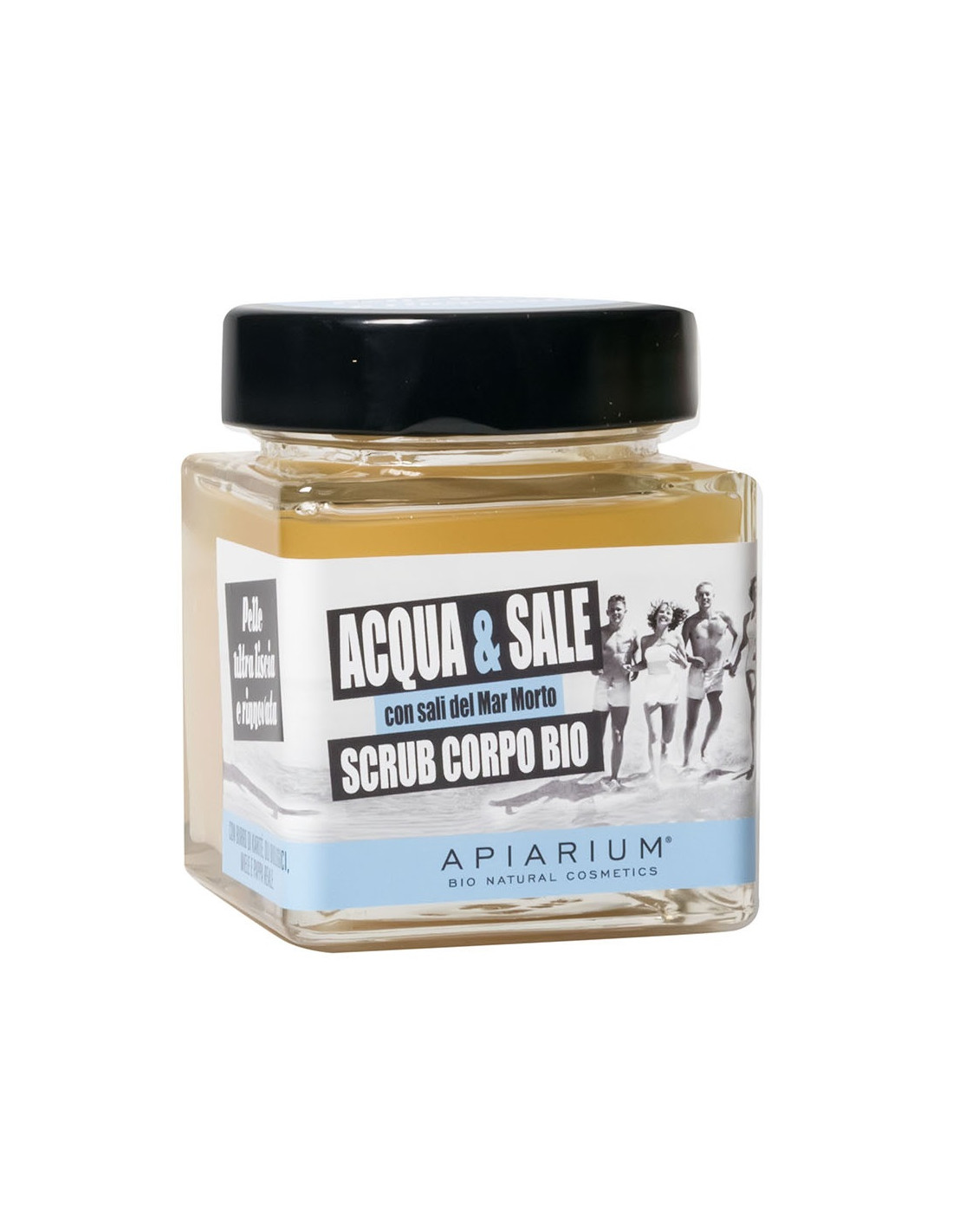 Scrub Corpo Bio Acqua E Sale di Apiarium è ideale per svolgere un'azione esfoliante sulla pelle, favorendo il naturale turnover cellulare e permettere di rivitalizzare le cellule della pelle. La formulazione è arricchita dalla combinazione del Burro di Karité degli oli Biologici di Argan, cocco e semi di girasole che permettono di nutrire la pelle.