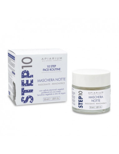 La Maschera Notte Step 10 di Apiarium studiata appositamente per pelli mature e sensibili ma adatta a tutti i tipi di pelle, si contraddistingue per l'alta quantità e qualità dei principi attivi contenuti, che al tuo risveglio ti regalano una pelle più riposata, fresca e luminosa.