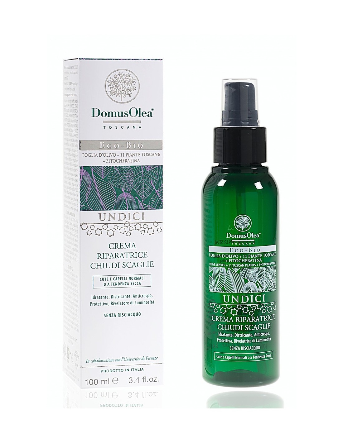 La Crema Riparatrice Chiudi Scaglie Domus Olea Toscana è un trattamento senza risciacquo, specifico per capelli secchi, crespi sfibrati, trattati, crespi, colorati, privi di luminosità, sia fini che grossi, in perdita di consistenza e tendenti alla caduta.