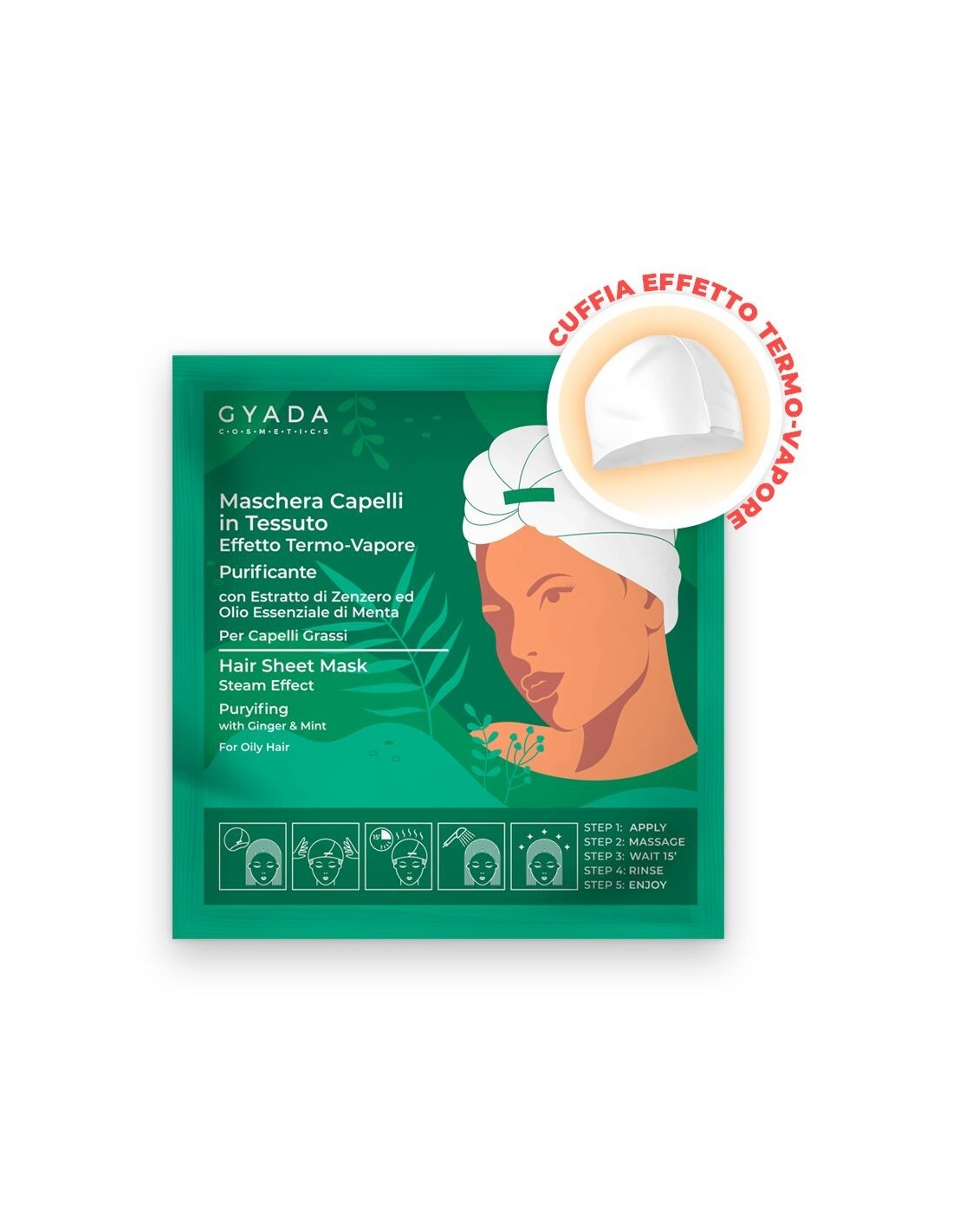 La Maschera Capelli in tessuto Purificante ed Antiforfora Gyada Cosmetics è un trattamento potenziato, con Zenzero e Menta, mirato per il trattamento dei capelli grassi e con forfora.