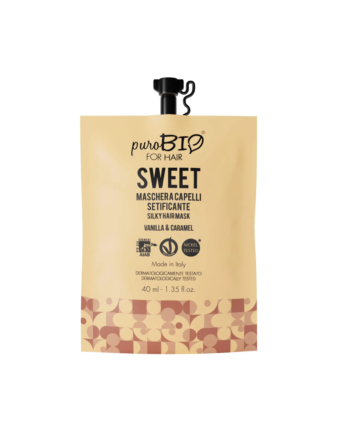 Maschera Sweet di puroBIO è formulata per donare ai tuoi capelli morbidezza e luminosità, oltre ad un inebriante profumo di vaniglia e caramello, per capelli luminosi e morbidi come la seta.