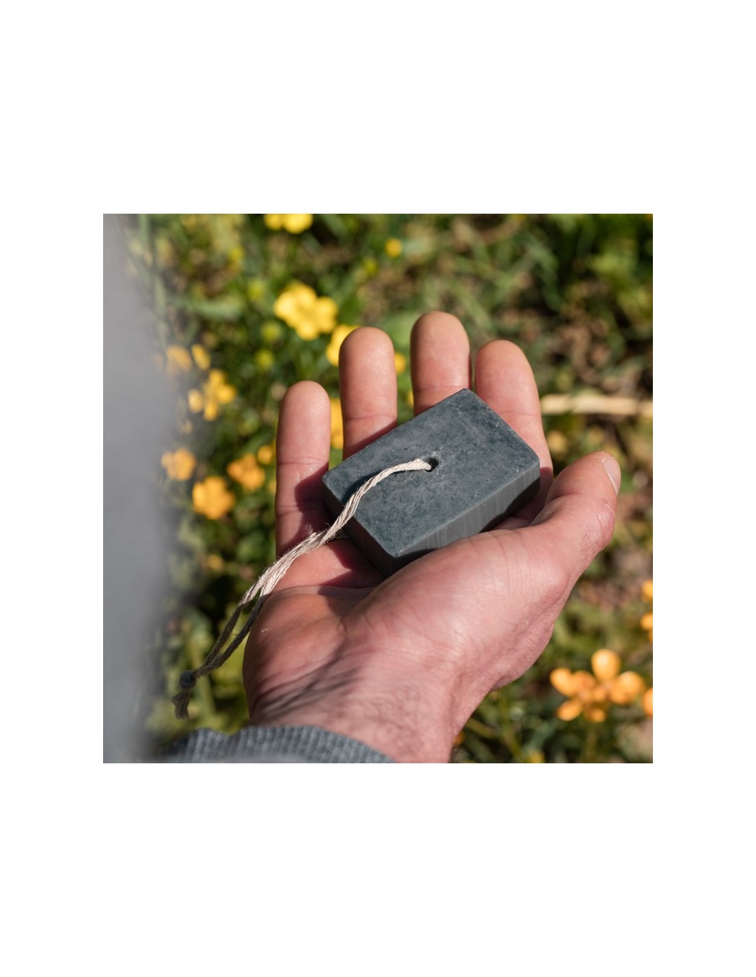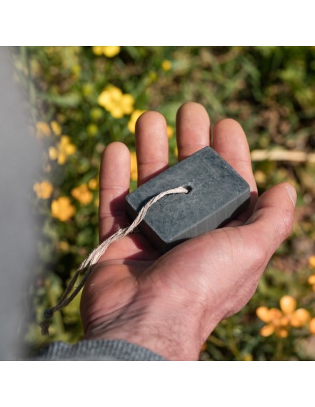 Il panetto di shampoo deve asciugarsi in un contenitore che ne favorisca la completa asciugatura oppure è possibile appenderlo con il suo cordino in canapa naturale.