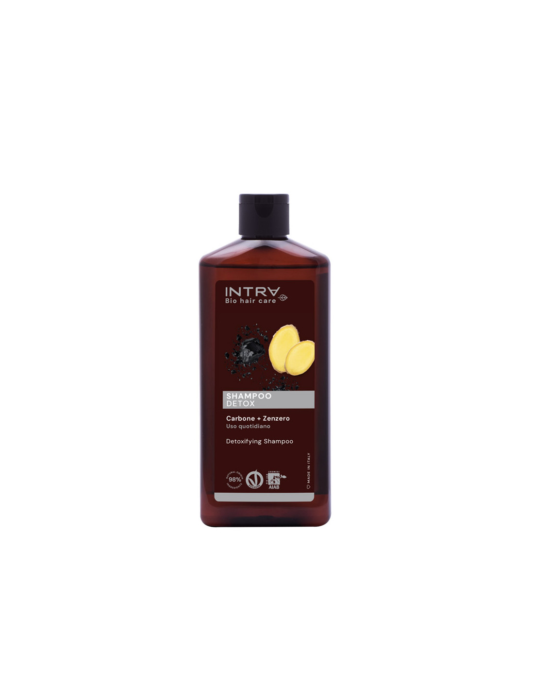 Shampoo Detox biologico e VeganOk con Carbone Vegetale e Zenzero, ideale per eliminare impurità e stress ambientali. Deterge delicatamente, rinfresca la cute e lascia i capelli puliti e leggeri.