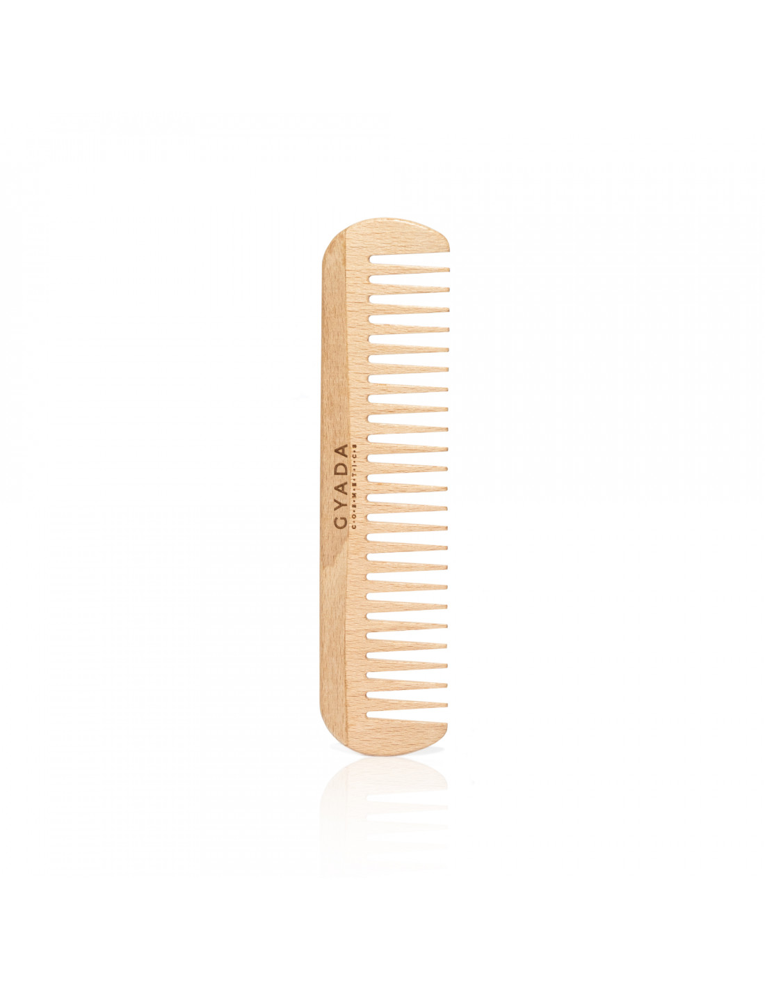 Il Pettine Radone di Gyada è realizzato in legno di faggio rifinito e levigato, per pettinare e districare tutte le tipologie di capelli, senza spezzare o tirare, anche in caso di capelli bagnati.
