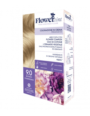 La Tinta Capelli 9.0 Biondo Chiarissimo di FlowerTint tinge i tuoi capelli coprendo i capelli bianchi e donandoti una chioma brillante e luminosa. La sua formulazione è vegana e senza ammoniaca, PPD e resorcina, grazie all’assenza di questi ingredienti la profumazione non è sgradevole come nelle altre tinte.
