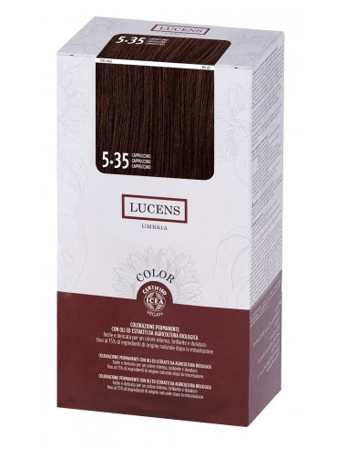 Tinta Color Lucens 5.35 - Cappuccino di Lucens Umbria è una tinta che dona una colorazione permanente alla tua chioma, senza l'utilizzo di ammoniaca, e con oli ed estratti derivanti da agricoltura biologica. La sua formulazione contiene sin 75% di ingredienti di origine naturale, permettendoti di ottenere una colorazione intensa ma allo stesso tempo di usufruire delle proprietà nutrienti e protettive degli ingredienti di origine naturale.