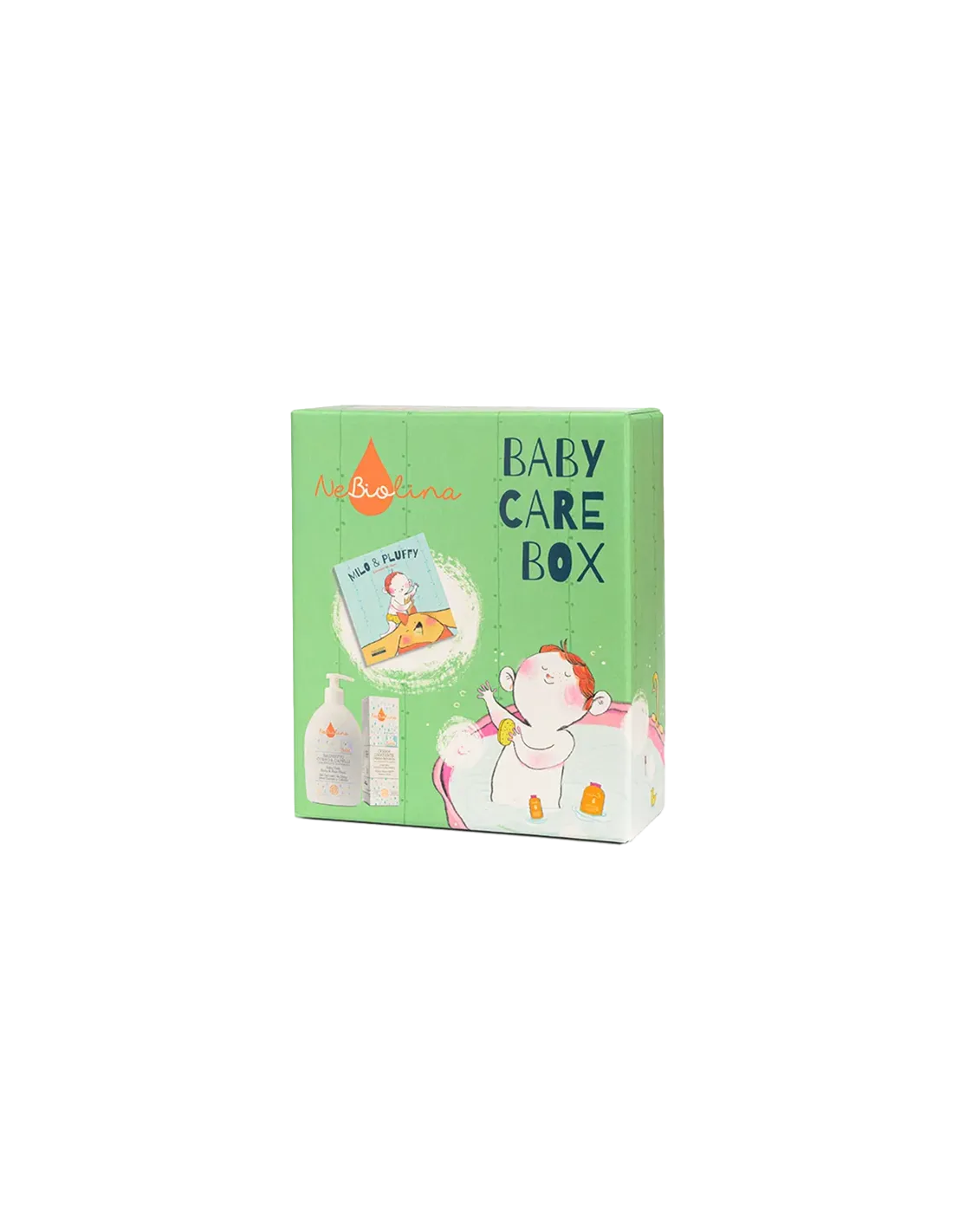 Baby Care Box NeBiolina: bagnetto, crema idratante e silent book “Milo & Pluffy”. La coccola perfetta per la cura dei più piccoli, con un dolce momento narrativo da condividere.