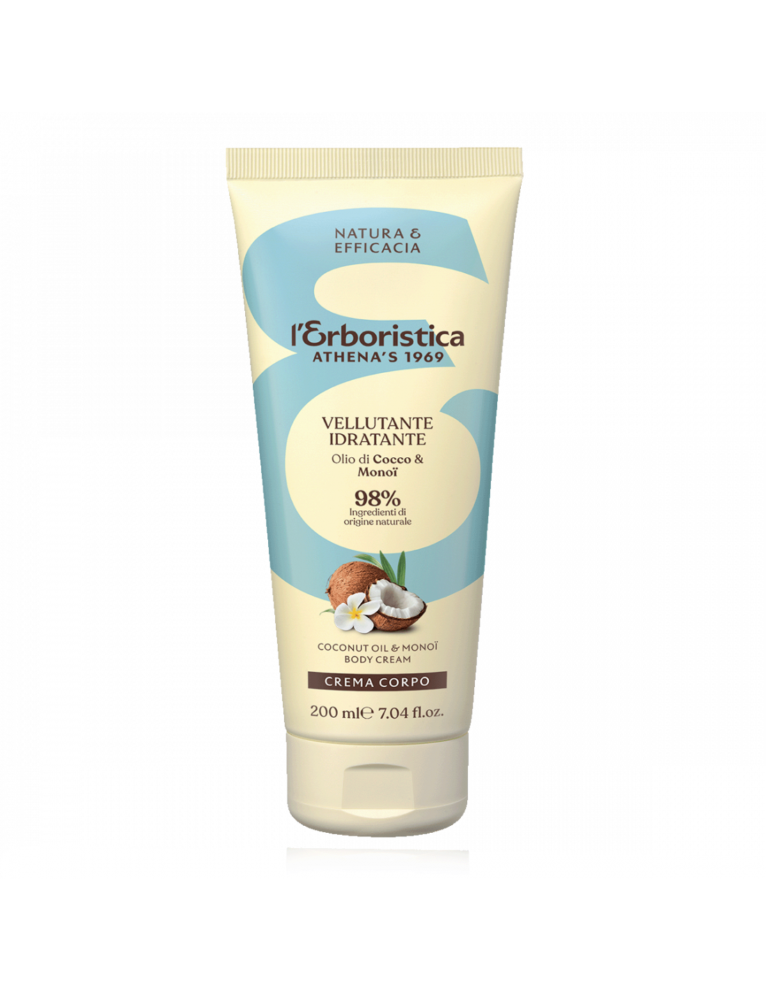Crema corpo idratante all’olio di cocco con burro di karité e vitamina E. Nutre, leviga e profuma la pelle senza ungere, lasciandola morbida, elastica e vellutata.