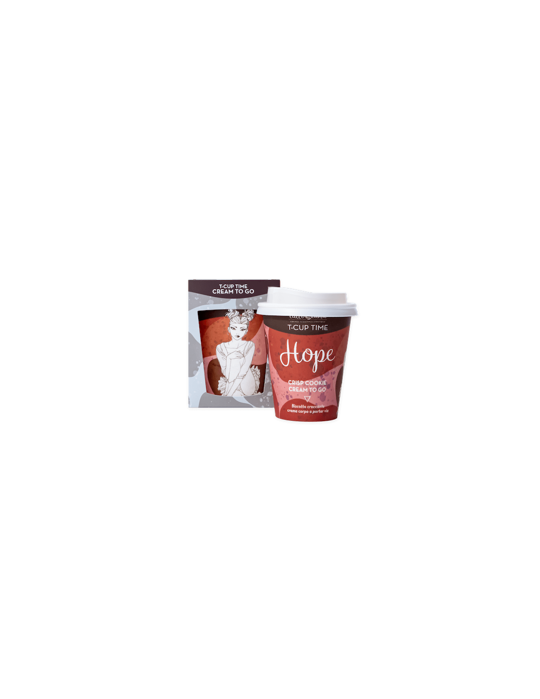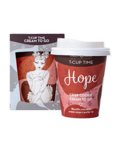 T-Cup Time Hope Cream To Go di Latte E Luna è una crema corpo in un comodo bicchiere a portar via in cartone alimentare e coperchio in pet riciclato.