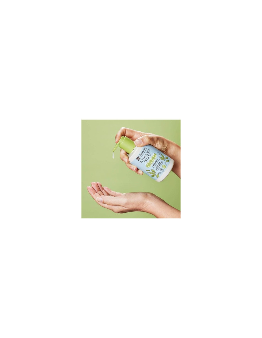 Detergente intimo lenitivo con Tè Verde bio e Acido Ialuronico. pH 3.5, perfetto per post-parto, ciclo, irritazioni e dopo lo sport. Freschezza e protezione quotidiana.