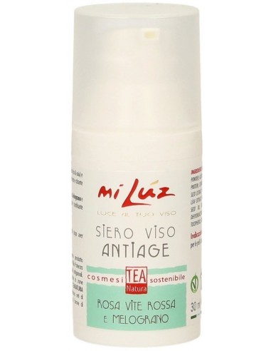 Il Siero Viso AntiAge- Rosa Vite Rossa e Melograno di Tea Natura è un siero concentrato in attivi vegetali mirati per il trattamento delle pelli mature e/o stressate.