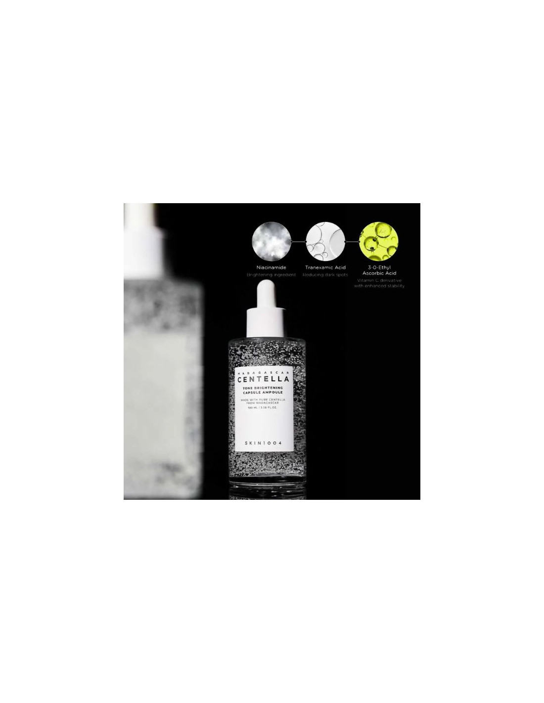 Centella Asiatica Extract (77%), Butylene Glycol, Glycerin, Niacinamide (4%), Tranexamic Acid (2%), 1,2-Hexanediol, Water, Betaine, Madecassoside, Hydrogenated Lecithin, Xylitylglucoside, Anhydroxylitol, Xylitol, Panthenol, Zea Mays (Corn) Starch, Arginine, Mannitol, 3-O-Ethyl Ascorbic Acid, Microcrystalline Cellulose, Lactobacillus Ferment, Hydroxyethylcellulose, Pentylene Glycol, Glucose, Ethylhexylglycerin, Acrylates/C10-30 Alkyl Acrylate Crosspolymer, Xanthan Gum