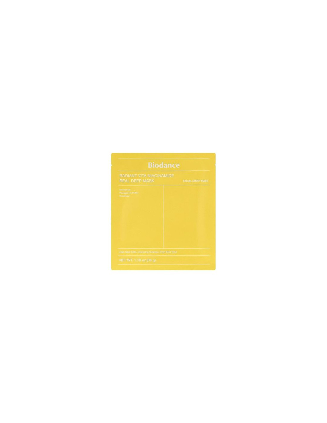 Regala nuova vita alla tua pelle con BIODANCE Radiant Vita Niacinamide Real Deep Mask, la maschera viso in idrogel ad azione illuminante intensiva pensata per chi desidera un incarnato più uniforme, radioso e privo di macchie scure.