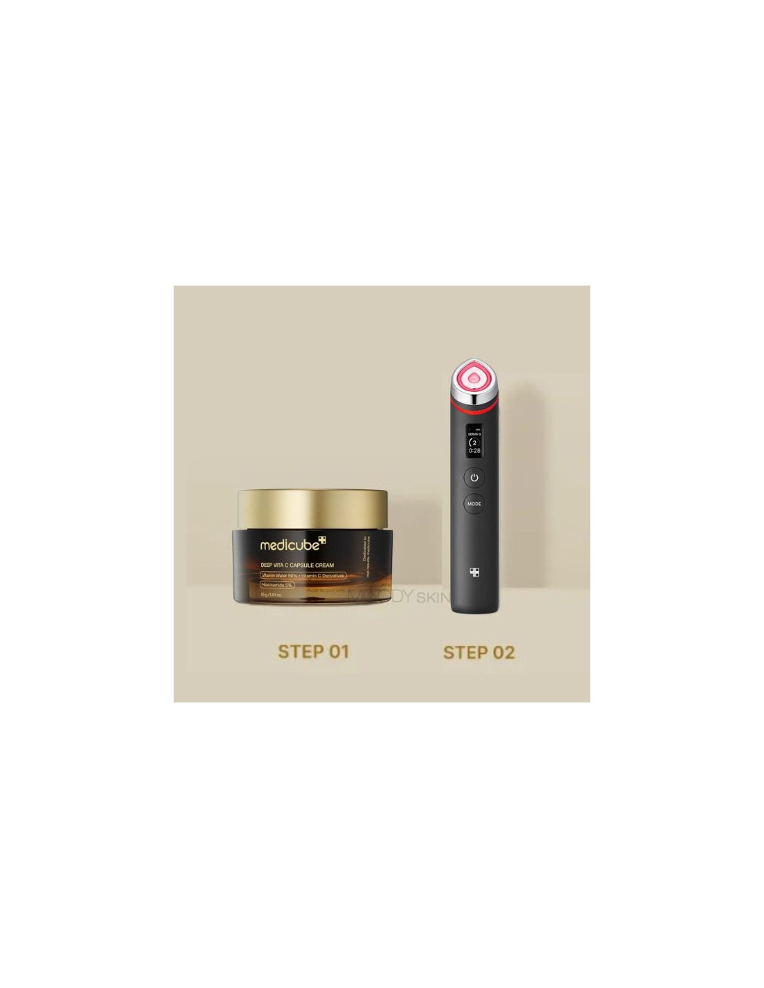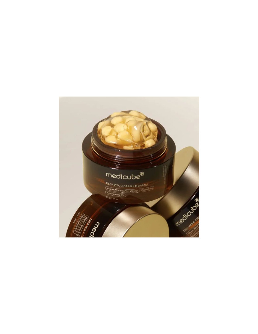 MEDICUBE Deep Vita C Capsule Cream è una boba cream alla vitamina C ad azione illuminante e rivitalizzante, studiata per dare nuova energia alle pelli spente, secche o segnate da macchie, discromie e segni del tempo. La sua texture a capsule, unica nel suo genere, permette un’idratazione modulabile in base alle esigenze, trasformando ogni applicazione in un trattamento personalizzato.