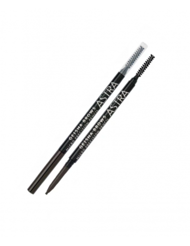 Geisha Brows Micro Precision Pencil 05 Brunette di Astra è la speciale matita automatica per le sopracciglia, grazie alla mina sottilissima risulta precisa e permette di ottenere un risultato professionale, il risultato ottenuto può essere equiparato al risultato della tecnica del microblading.