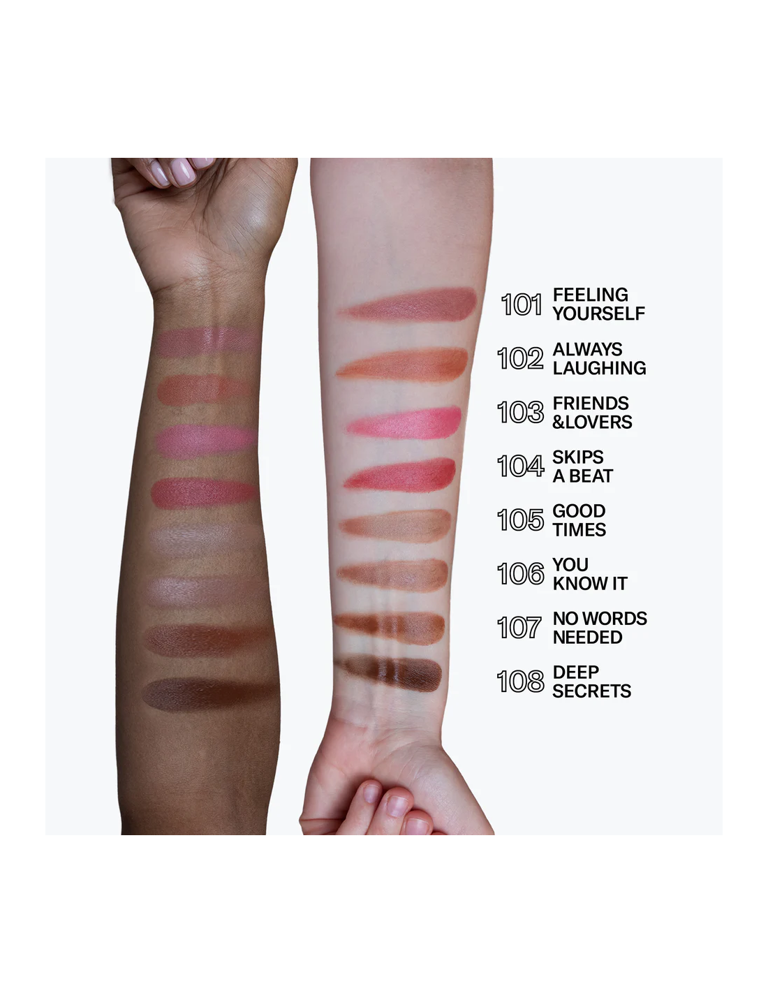 Perfetto anche per le labbra, Skin Mate consente di creare look monocromatici moderni e di tendenza. La formula, ricca di oli leggeri, garantisce un’applicazione scorrevole e pigmentata, facile da sfumare sia con pennello che con dita o make-up blender.