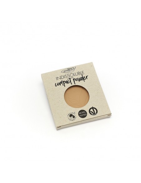 La Cipria Indissoluble Effetto Seta col.2 di PuroBio si presenta in un packaging molto essenziale, dal colore nero, al tatto gommato e resistente. Piccola e maneggevole, molto pratica da portare sempre con se, ha uno specchietto interno che permette di ritoccare agevolmente il trucco quando si è fuori casa.